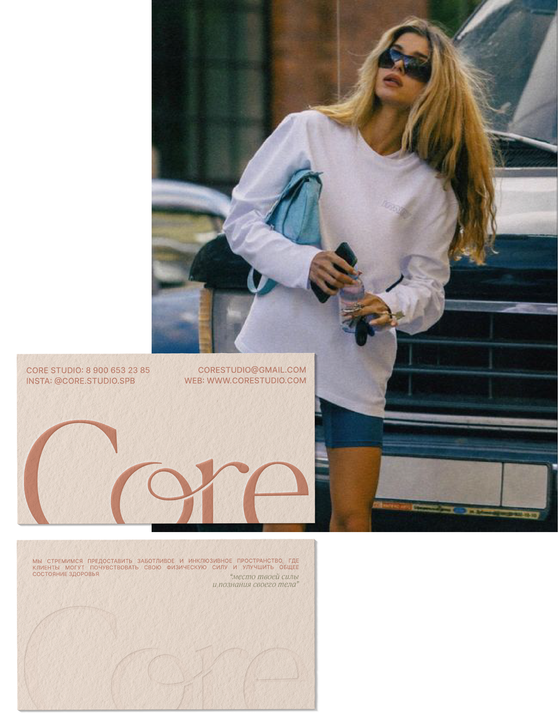 логотип студии «Core» выполнен в лаконичном стиле со своей изюминкой, где каждая буква повторяет линии человеческого тела.